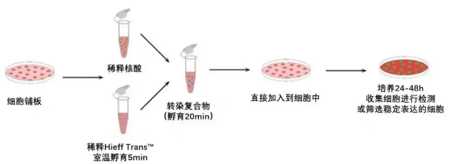 不同轉(zhuǎn)染試劑有不同的轉(zhuǎn)染方法,但大多大同小異。轉(zhuǎn)染時(shí)應(yīng)跟據(jù)具體轉(zhuǎn)染試劑推薦的方法,但也要注意,因不同實(shí)驗(yàn)室培養(yǎng)的細(xì)胞性質(zhì)不同,質(zhì)粒定量差異,操作手法上的差異等,其轉(zhuǎn)染效果可能不同,應(yīng)根據(jù)實(shí)驗(yàn)室的具體條件來(lái)確定最佳轉(zhuǎn)染條件。